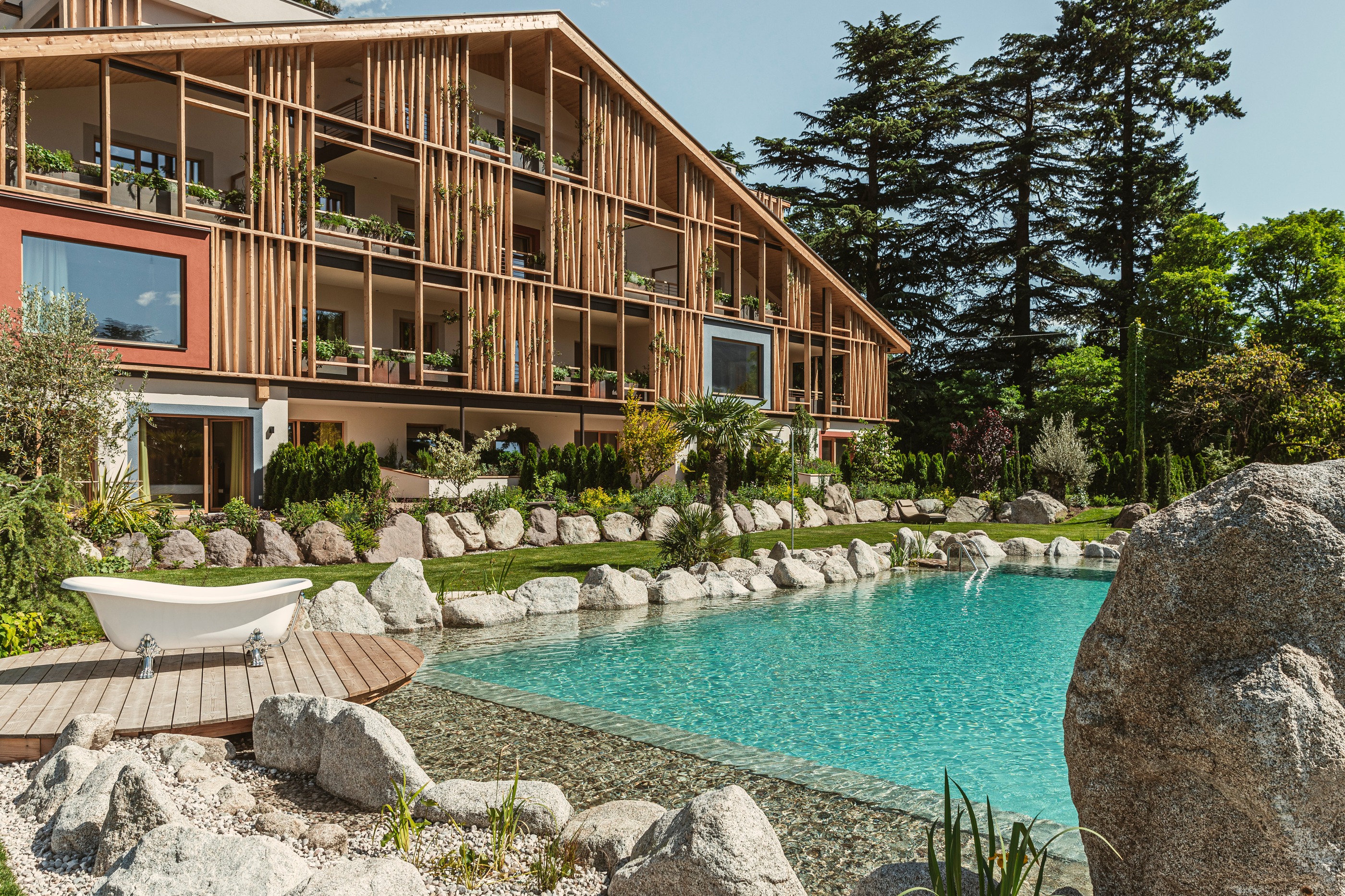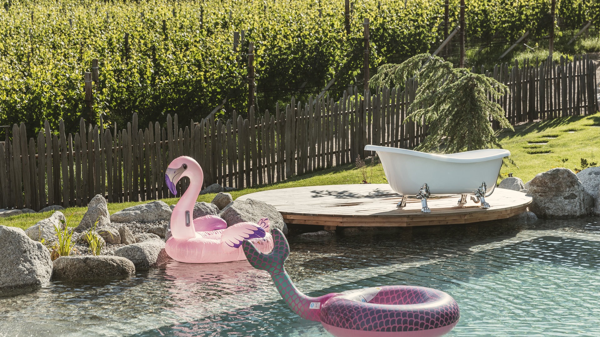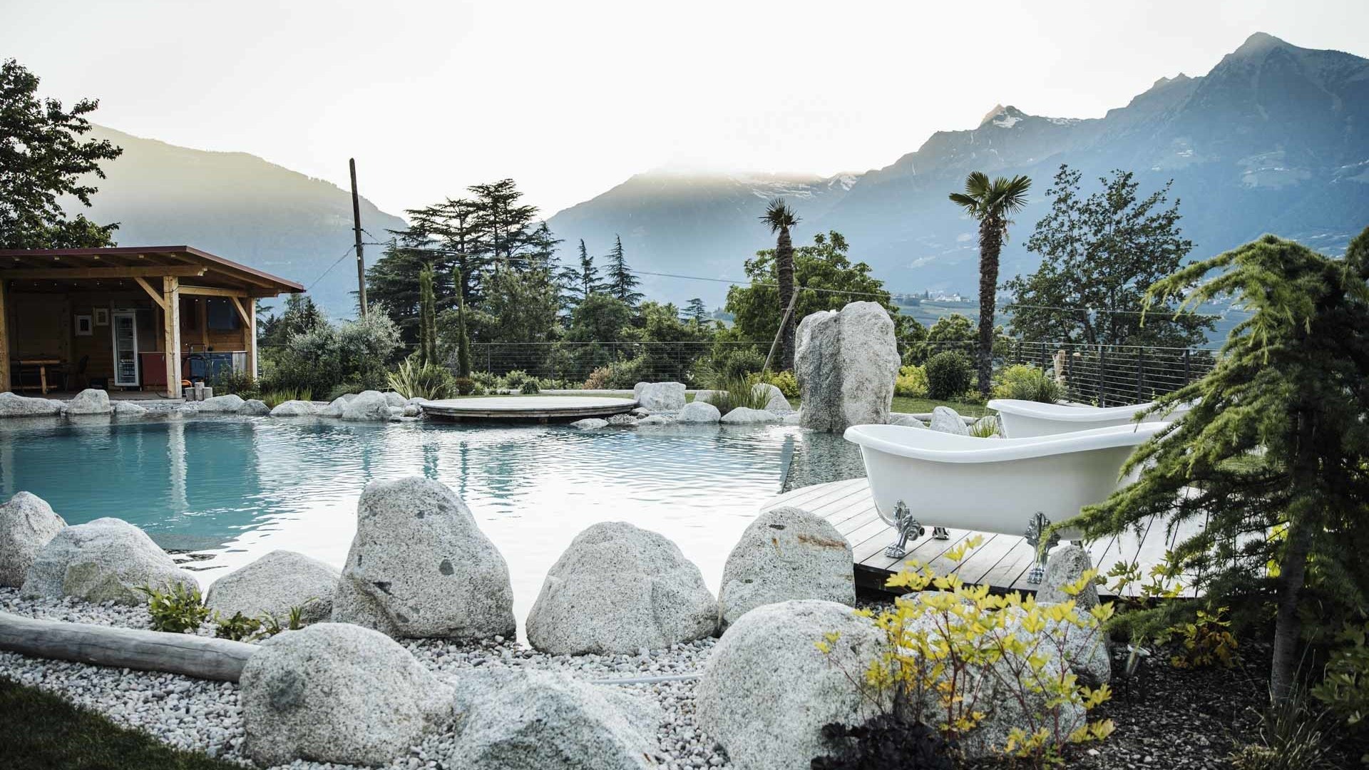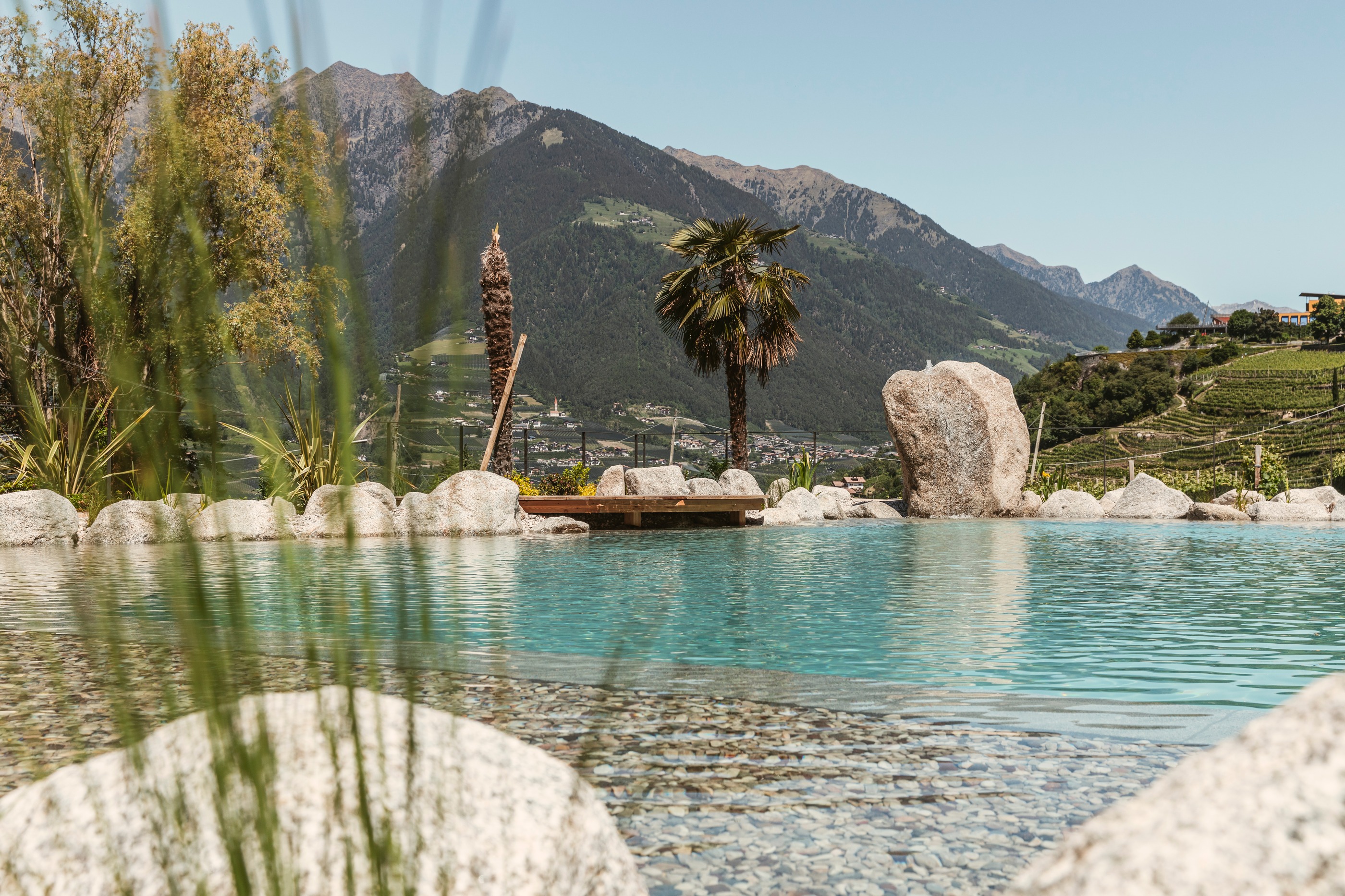 Ein Sprung ins Wasser, ein Blick auf die Berge – unser Pool ist der Lieblingsplatz aller Sonnenanbeter und Genießer.